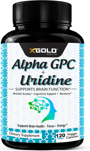 Alpha GPC Choline 600Mg + Uridine Monophosphate 300Mg-2-In-1 Nootropic Supplement Helps Boost Focus, Energy & Cognitive Performance -Potent Mood