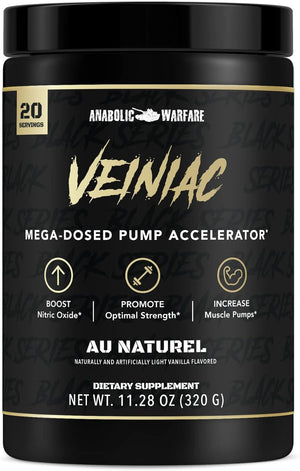 Caffeine Free Pre-workout*: Looking for the added focus and energy for your training but don’t want to get wired? Veiniac is the premier stimulant free pre-workout from Warfare. Take 15 minutes before your workout to support normal, healthy blood flow without the jitters from excess caffeine.* Pump Like Never Before*: If you’re looking for an increase in nitric oxide levels to take your muscle pump to the next level, look no further. Veiniac will support healthy blood flow and give you the added power you need to go the extra mile.* Effective Ingredients*: L- Citrulline, Betaine Anhydrous, AGMass , combine with others to provide over 13 grams of muscle pump activators to increase hydration during your workout to get the muscle pump you’ve always wanted.* All Warfare premium supplements are made at our cGMP facility. Every nitric oxide supplement, as well as our other products are formulated in a safe environment.* Our Motto: We stand by our products and your pursuit to live a healthy and happy life. Product Description Veiniac Take your training and flip it on its head with the best stimulant free pre-workout on the market. Veinaic combines effective ingredients like L- Citrulline and Betaine Anhydrous to give you pumps like never before. Your training is begging for more. Give it what it needs with Veinaic. *Veiniac Benefits: Stimulant Free Pre-workout*: Most pre-workouts are loaded with caffeine, which can actually have a negative effect on your training if you have a sensitivity. Veiniac gives you all the benefits of a traditional pre-workout while staying caffeine free.* Increase Muscle Pumps*: Normal, healthy blood flow is essential to getting the most out of your workout. Veiniac increases muscle pumps with novel ingredients to give you those muscle gains you’ve always wanted.* Mega-dosed*: Stop thinking small with your training. L- Citrulline, Betaine Anhydrous, GlycerSize, Beta Alanine, and more combine to offer you over 13 grams of muscle pump activators.* Unparalleled Muscle Growth*: Build muscle by increasing stamina and energy. Go harder with each set with the best pre-workout behind you.* Two Muscle Pumps*: Veiniac doesn’t just support healthy blood flow, but also provides a water pump. Your muscles will stay hydrated longer so you can go harder than ever before.*