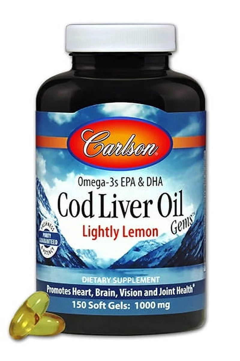 Carlson Cod Liver Oil, Lightly Lemon, 150 Soft Gels
