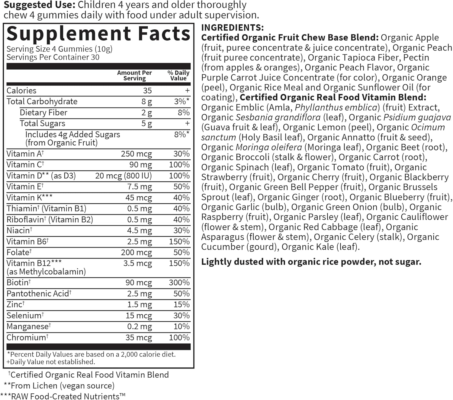 - ORGANIC GUMMY VITAMIN: Certified USDA Organic and Non-GMO Project Verified, Vegan, Certified Gluten Free and Kosher, No artificial flavors or colorings