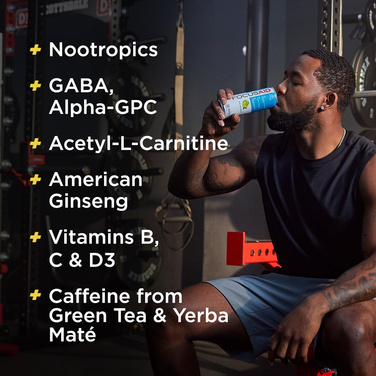 - FOCUSAID contains 100mg of natural caffeine from Yerba Mate, Green Tea & B-Complex—providing clean energy without the jitters—plus Nootropics, Alpha-GPC, American Ginseng, GABA, Rhodiola Rosea & vitamins to fuel your brain.