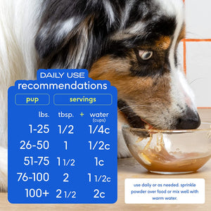 - EASY TO USE BONE BROTH FOR DOGS: Formulated as dog food toppers for dry food, wet food, or freeze-dried dog food. Just sprinkle the dog bone broth powder on your dog’s kibble or cat’s dry food. A must-have in your pet health collection!