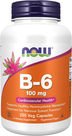 NOW Supplements, Vitamin B-6 (Pyridoxine Hcl) 100 Mg, Cardiovascular Health, 250 Veg Capsules