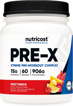 Nutricost Pre-X Xtreme Pre-Workout Complex Powder, Fruit Punch, 60 Servings, Vegetarian, Non-Gmo and Gluten Free
