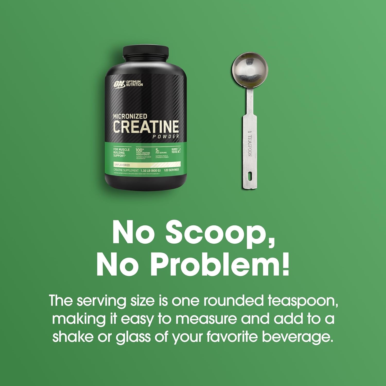 Optimum Nutrition Micronized Creatine Monohydrate Powder, Unflavored, Keto Friendly, 60 Servings (Packaging May Vary)
