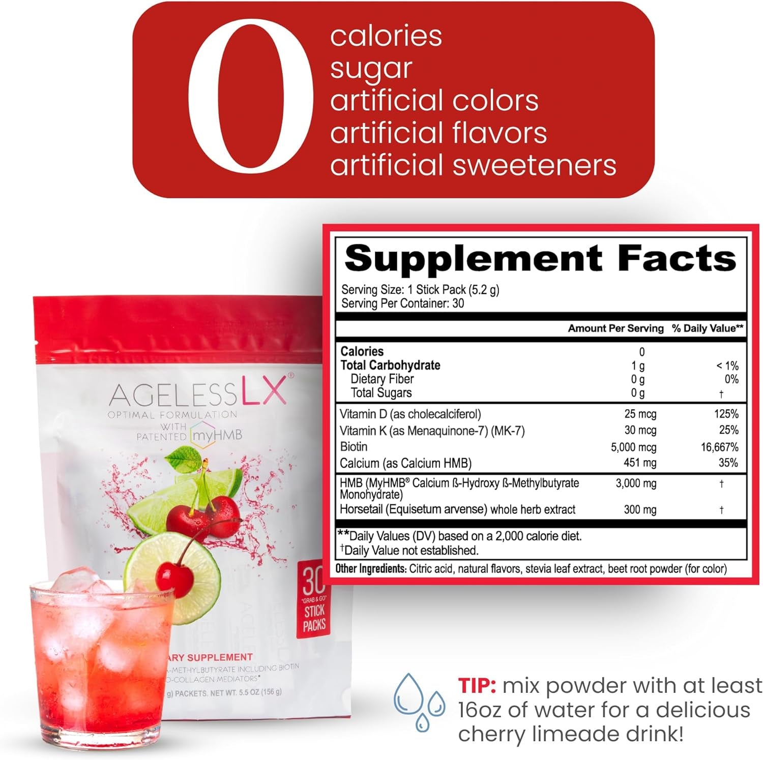 Powder Supplement for Women - with HMB Collagen Enhancer plus Vitamin D3 with K2, Horsetail and Biotin for Lean Muscle and Stronger Hair and Nails - 30 Powder Packets, Cherry Limeade is a product from AgelessLX designed to complement your health and wellness lifestyle. It uses carefully selected ingredients and materials to deliver quality and effectiveness.