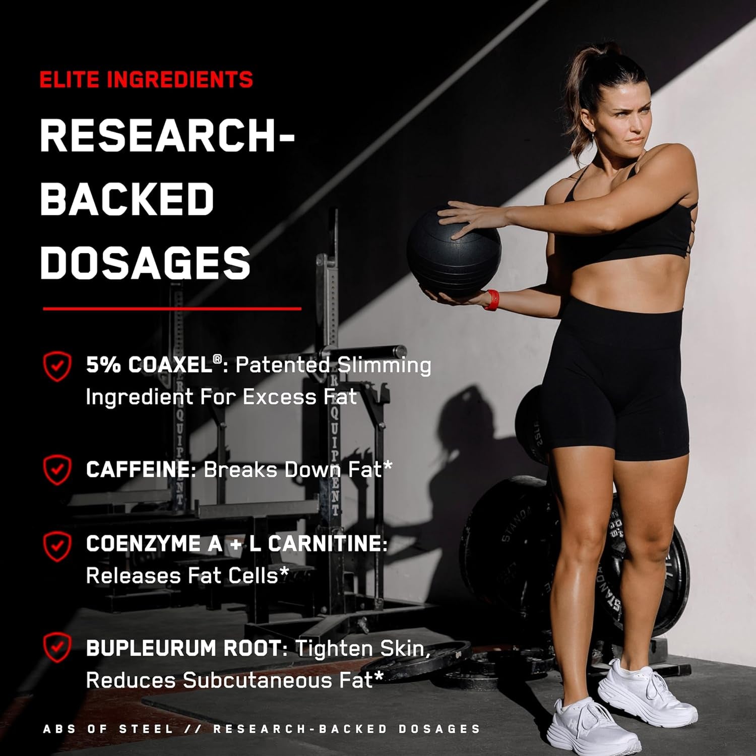 - HEAT-ACTIVATED THERMOGENIC — Abs of Steel's heat-activated formula assists in turning food into energy and provides belly firming tightening, helping assist the appearance of a chiseled core and sculpted physique in addition to proper exercise. When used regularly, it specifically targets the trouble areas that exercise and diet tend to miss.