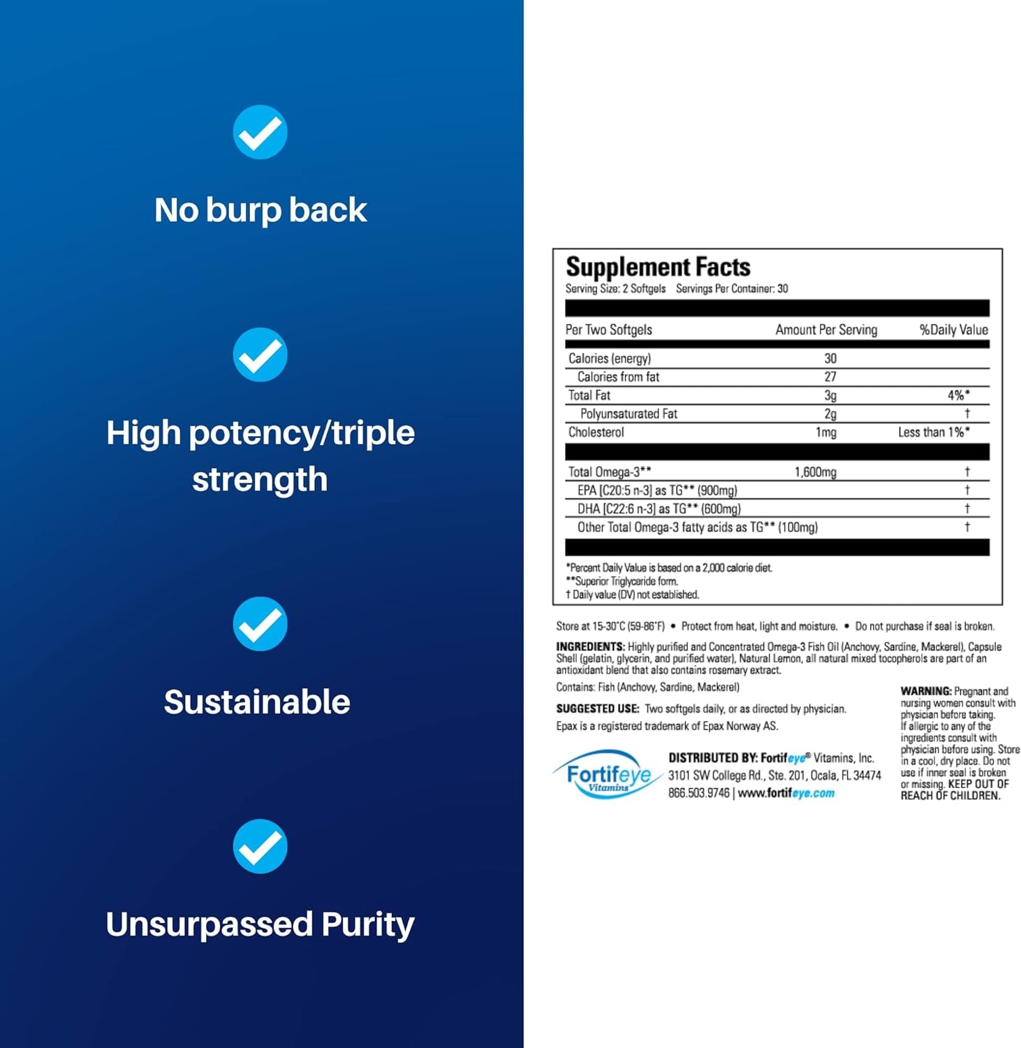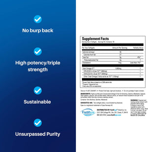 - Fortifeye's fish oils are produced in Norway by one of the most experienced teams in the world. They are made with re-esterified triglyceride (rTG) omega-3 which is absorbed by your body three times better than cheap fish oils and doesn't cause you to have fishy burps.
