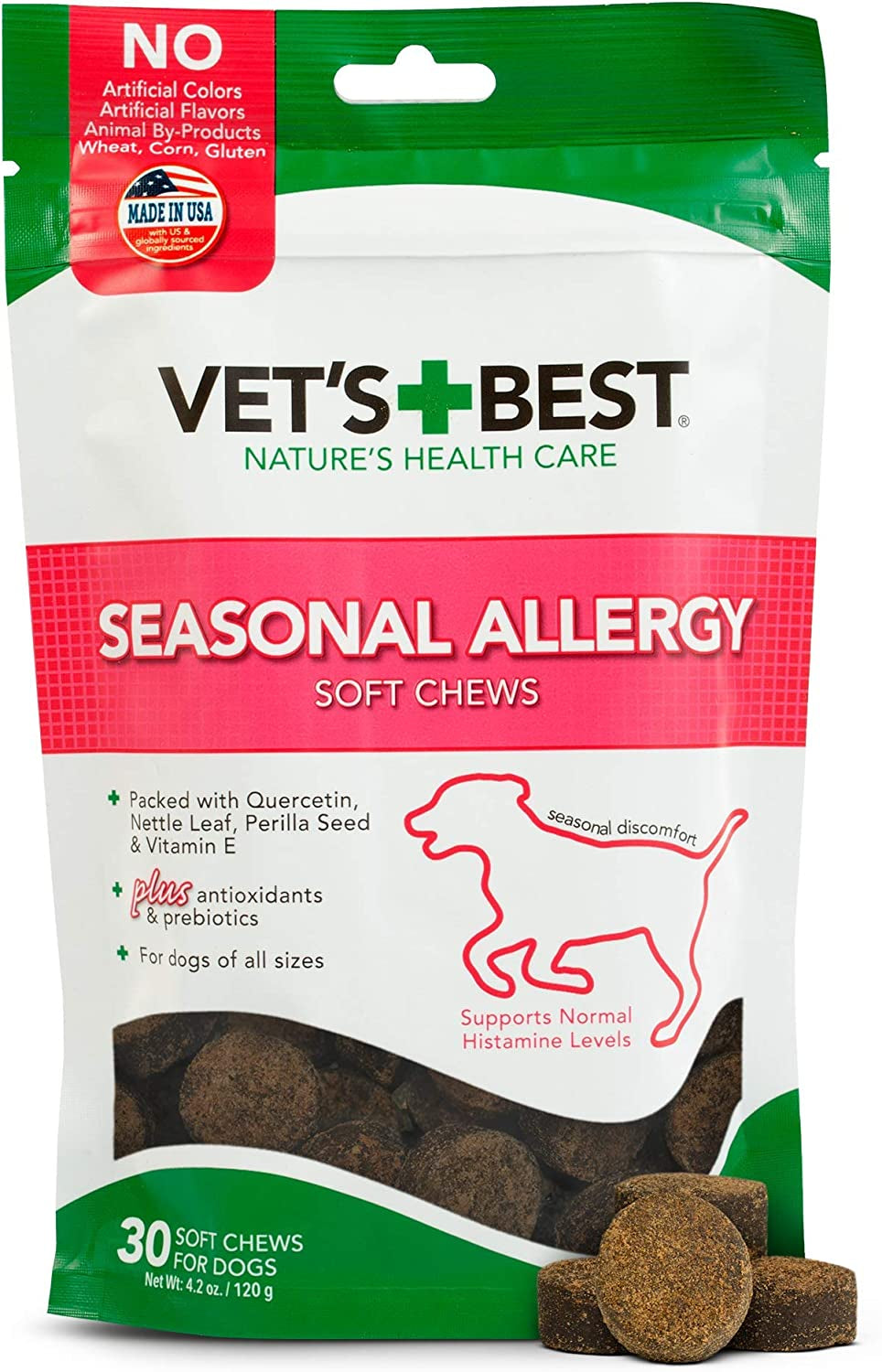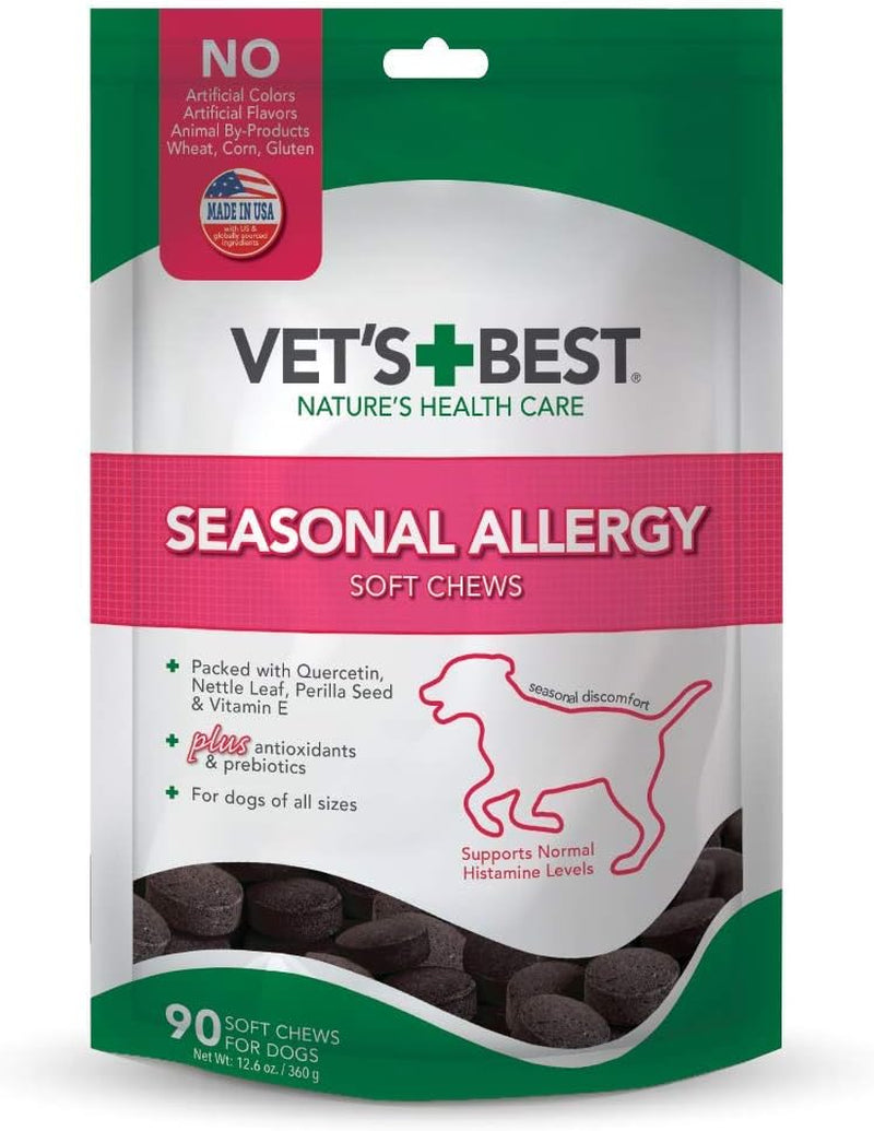 - SUPPORTS NORMAL HISTAMINE LEVELS - Vet's Best Seasonal Allergy Soft Chews for Dogs helps support normal histamine levels for seasonal discomfort and proper skin moisture.