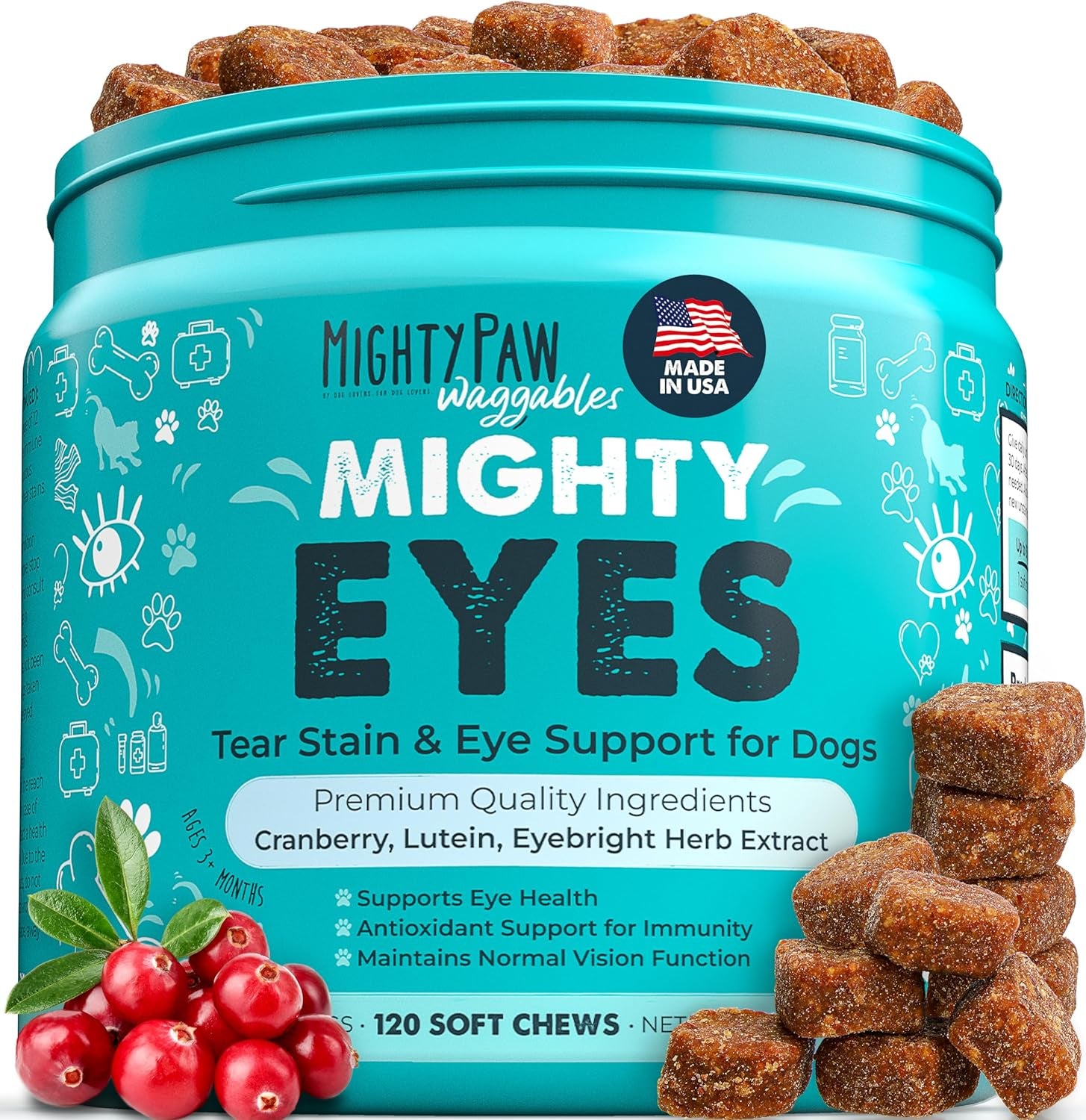 - An Eye-Opening Blend of Support: Formulated by vets, our blend of cranberry, lutein, and eyebright herb extract is carefully selected to offer an effective and safe way to bid tear stains adieu. Say hello to clean eyes and wagging tails!