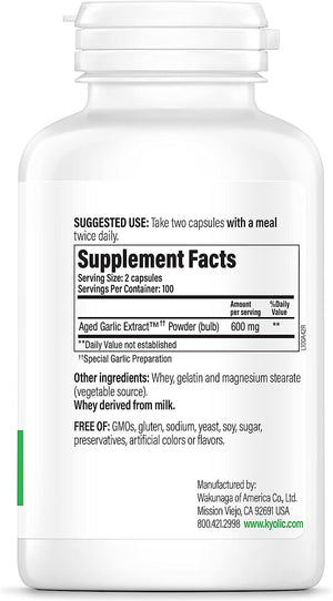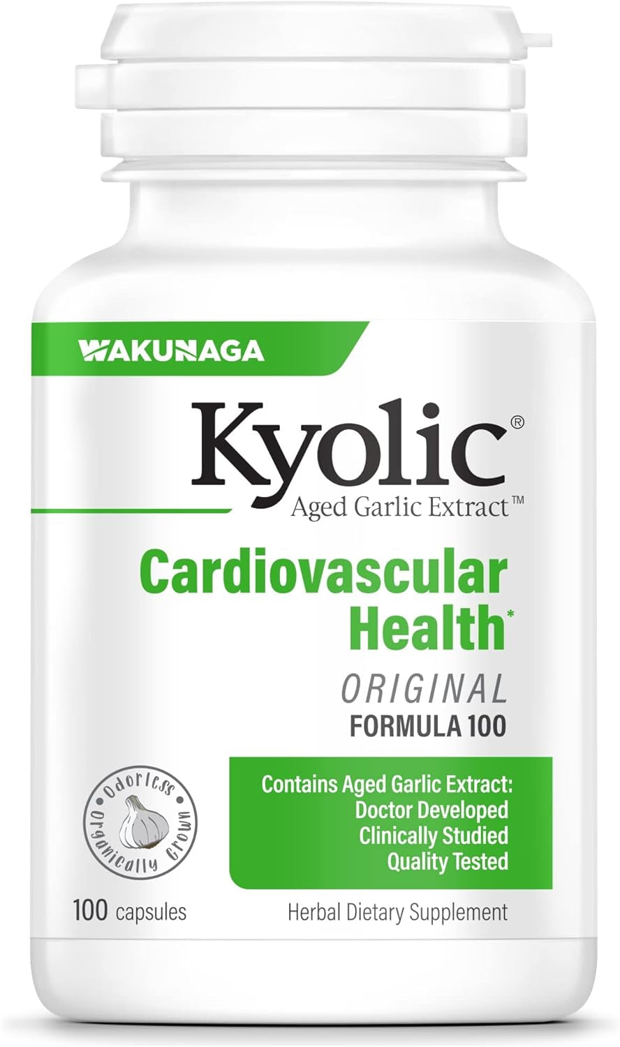Kyolic Aged Garlic Extract Formula 100, Original Cardiovascular, 200 Capsules (Packaging May Vary) by Wakunaga of America, Co.,Ltd. is a dietary supplement crafted for adults who want a simple way to support everyday wellness. It fits easily into balanced routines that emphasize nourishing meals, movement, hydration, and rest. The formula uses quality-sourced ingredients and a clean label approach. There are no medical claims—just a straightforward product intended to complement daily habits. Use consistently and pair with a healthy lifestyle for best results. This item is not intended to diagnose, treat, cure, or prevent any disease. Individual responses vary.